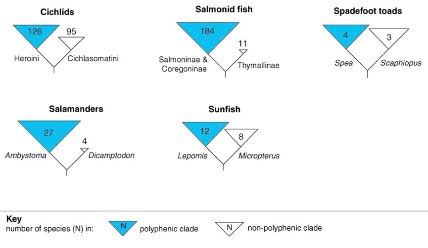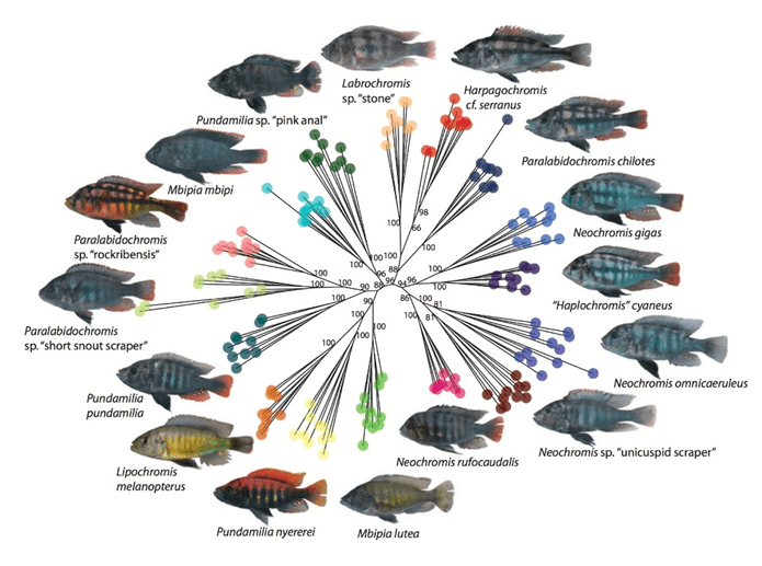 例如,传统的理论会将非洲三湖慈鲷的趋同演化视为相似环境压力的结果,但慈鲷祖先的发育基础显然也起了作用。如一种“厚嘴唇”的趋同表型,可能是慈鲷侧扁的身形、吞吸式觅食方式与充满缝隙的碎石堆环境互作的结果;沿着类似的思路,或许能最终解释为什么湖中其他鱼类,没有经历大规模适应性辐射。