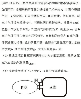 在刚刚过去的2022年高考中,山东物理试卷第15题冲上了热搜。该题以鱼鳔[biào]为模型考察了基础的力学和运动学知识。题目难度不高,但其新颖的情景设置让许多考生觉得非常有趣。题干第一句“某些鱼类通过调节体内鳔的体积实现浮沉”,虽然符合大部分人的想象或推理,但其实并不准确。